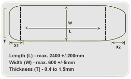 Stainless steel sheet has maximum length 2500 mm +/- 200 mm.